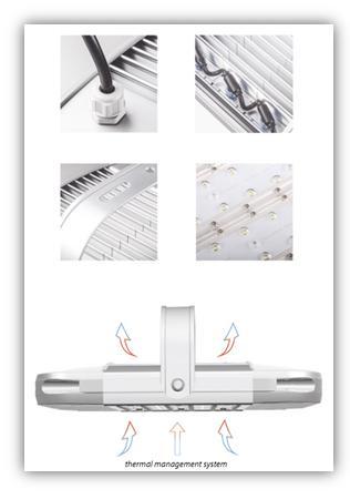 แสงที่ได้จากโคมไฟ LED เป็นแสงชนิดพิเศษ ที่ไม่ได้เกิดจากอุปกรณ์สะท้อนแสง หรือ reflector เพราะ ถ้าใช้ reflector ความเข้มแสงจะลดลง แต่ประสิทธิภาพจะสูงขึ้น เหมาะสำหรับใช้ในโรงงานอุตสาหกรรมต่าง ๆ, โกดังเก็บสินค้า, Lines การผลิต, ปั๊มแก๊สหรือน้ำมัน และอื่น ๆ เราใช้ LED ที่ผลิตจากบริษัท Philips ซึ่งมีคุณภาพและประสิทธิภาพสูง อายุการใช้งานนาน
